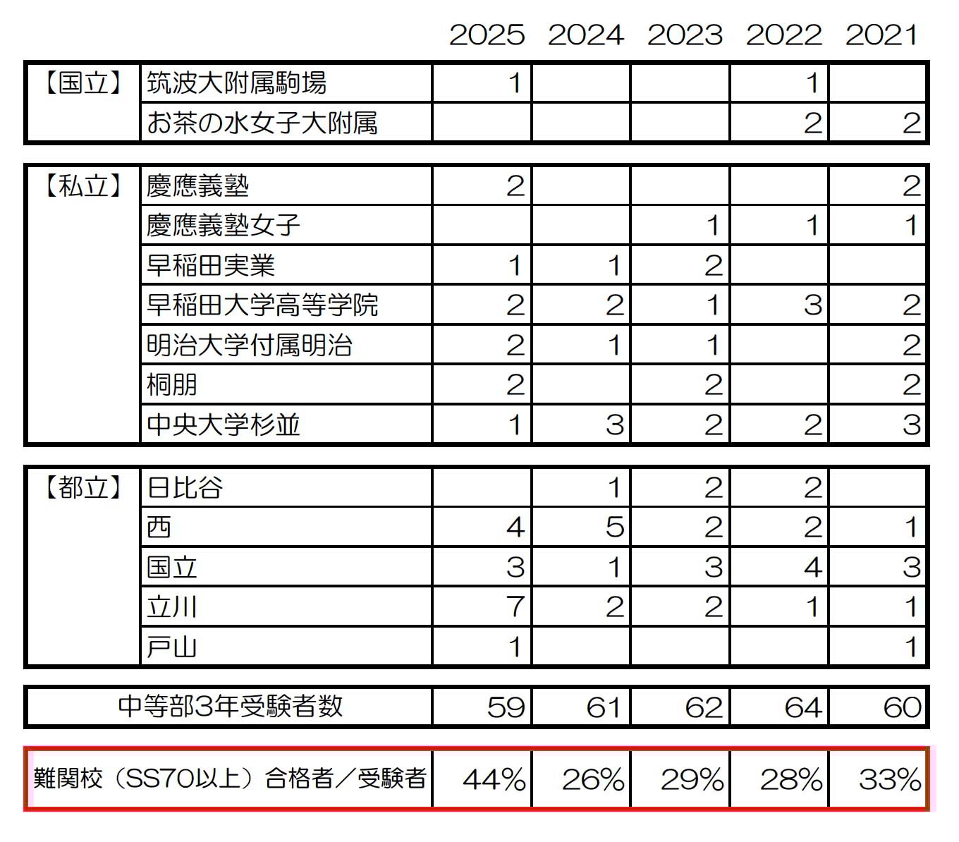 中等部は難関校SS70以上の合格44%