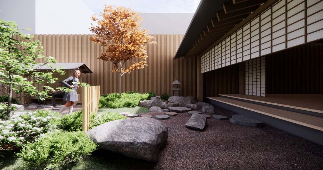 茶室、足湯、日本庭園を新設