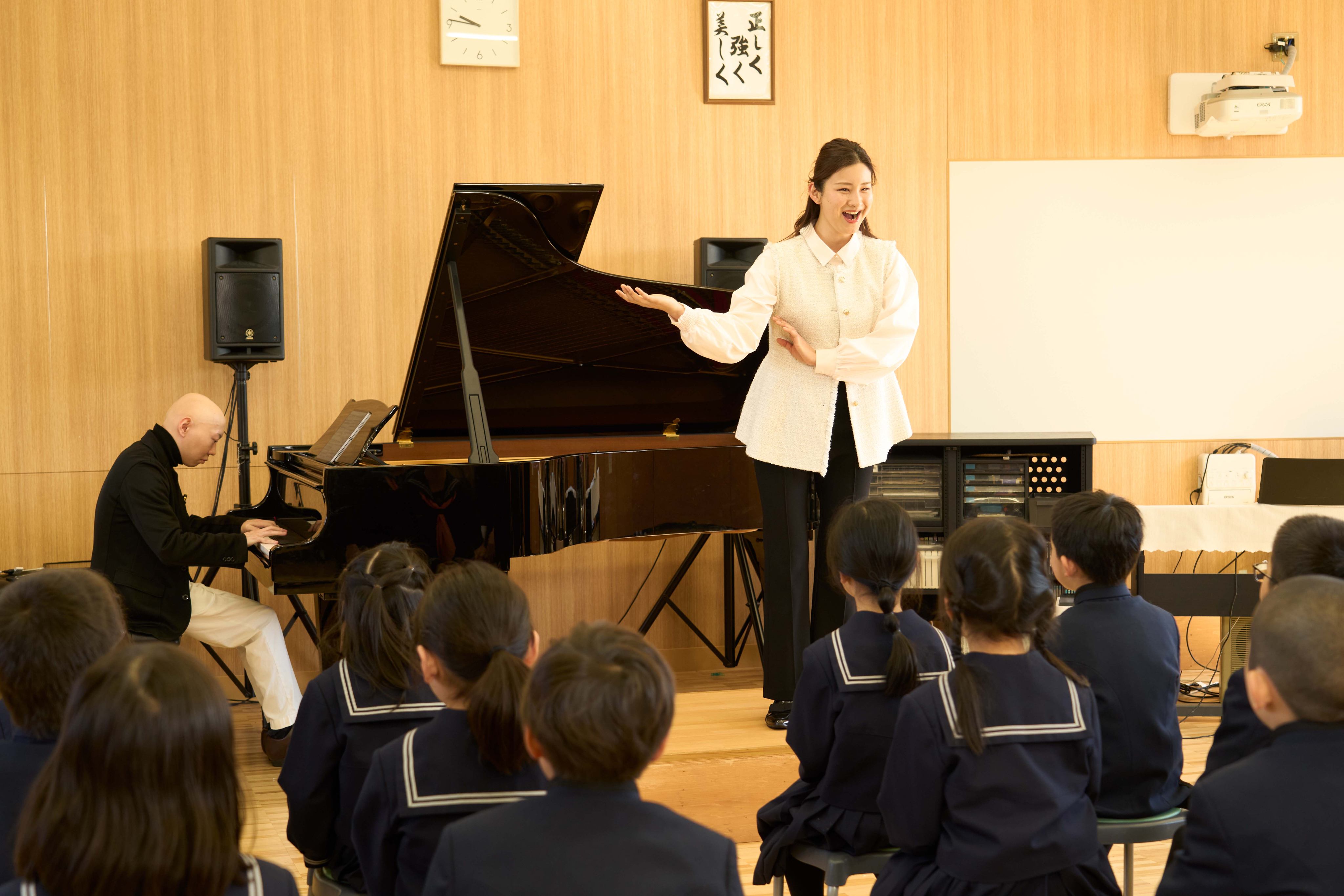 音楽室には「スタインウェイ」のコンサート用グランドピアノを設置し、幼少期から質の高い環境のもとで本格的な音楽教育を行っています。