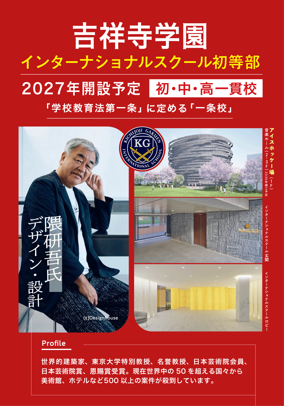 中等部は初等部と同じく、吉祥寺キャンパス内に開設する予定です。 インターナショナルスクール高等専修部は港区など都心部への移転を予定しています。